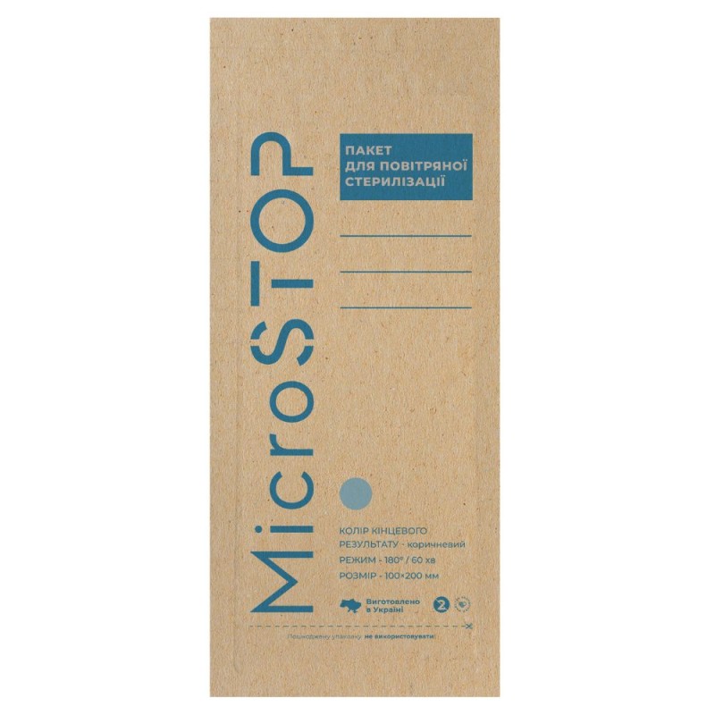 Крафт-пакети 100х200 мм Microstop для стерилізації призначені для парової, повітряної стерилізації. Виготовлені з крафт-паперу, що самоклеяться, легко проникні для відповідних стерилізуючих агентів, у закритому вигляді непроникні для мікроорганізмів, зберігають цілісність після стерилізації відповідним методом. На зовнішній стороні пакета нанесений індикатор 4 класу (після проведення процедури змінюється колір), що дуже зручно визначення ефективності стерилізації.
