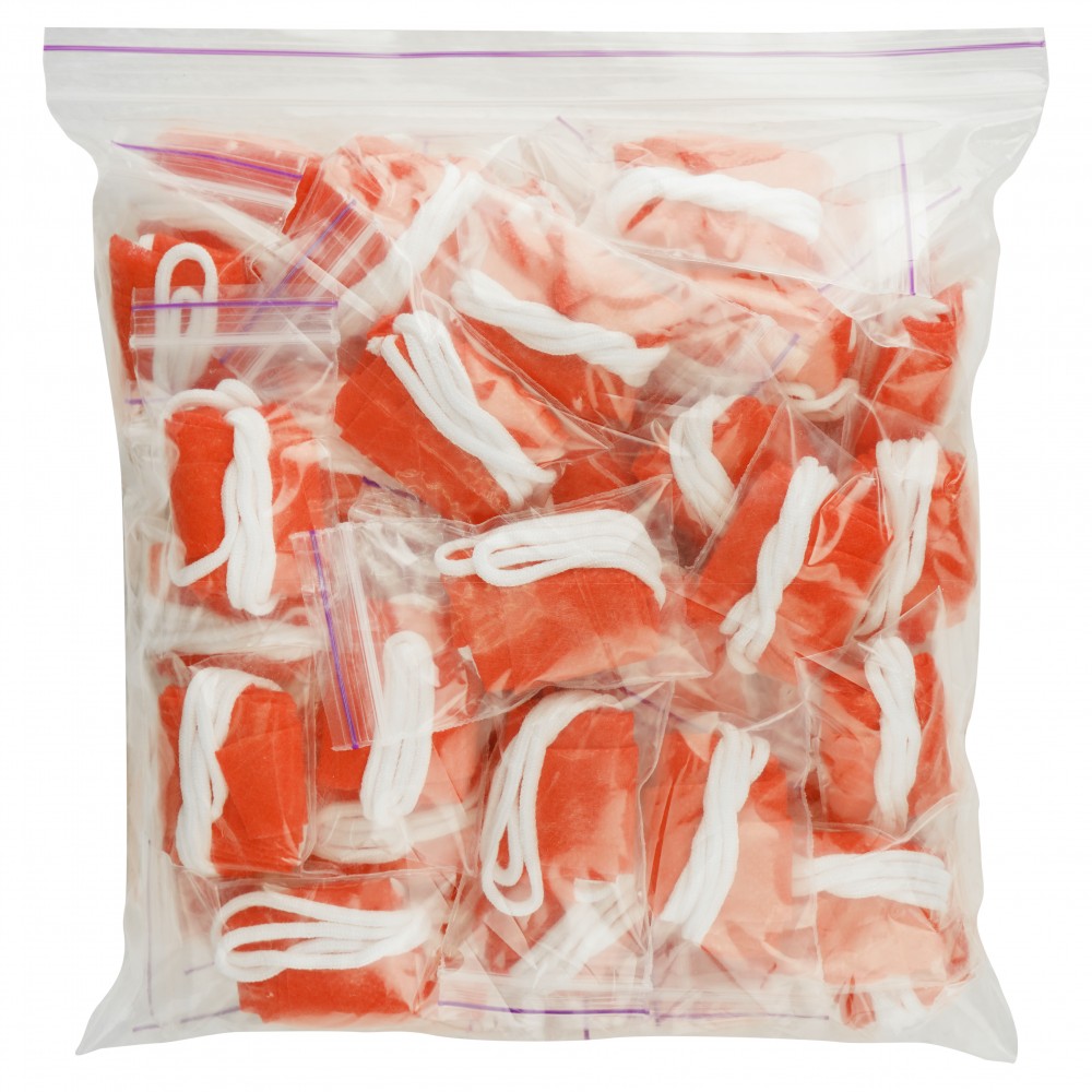 На еластичній гумці високої міцності, в індивідуальному пакуванні, повітропроникні, пилозахисні, гіпоалергійні.
