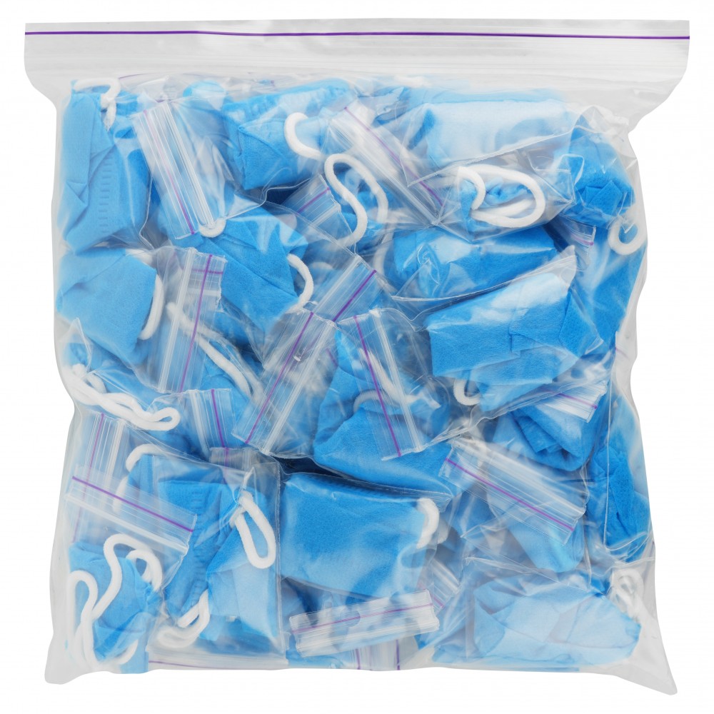 На еластичній гумці високої міцності, в індивідуальному пакуванні, повітропроникні, пилозахисні, гіпоалергійні.